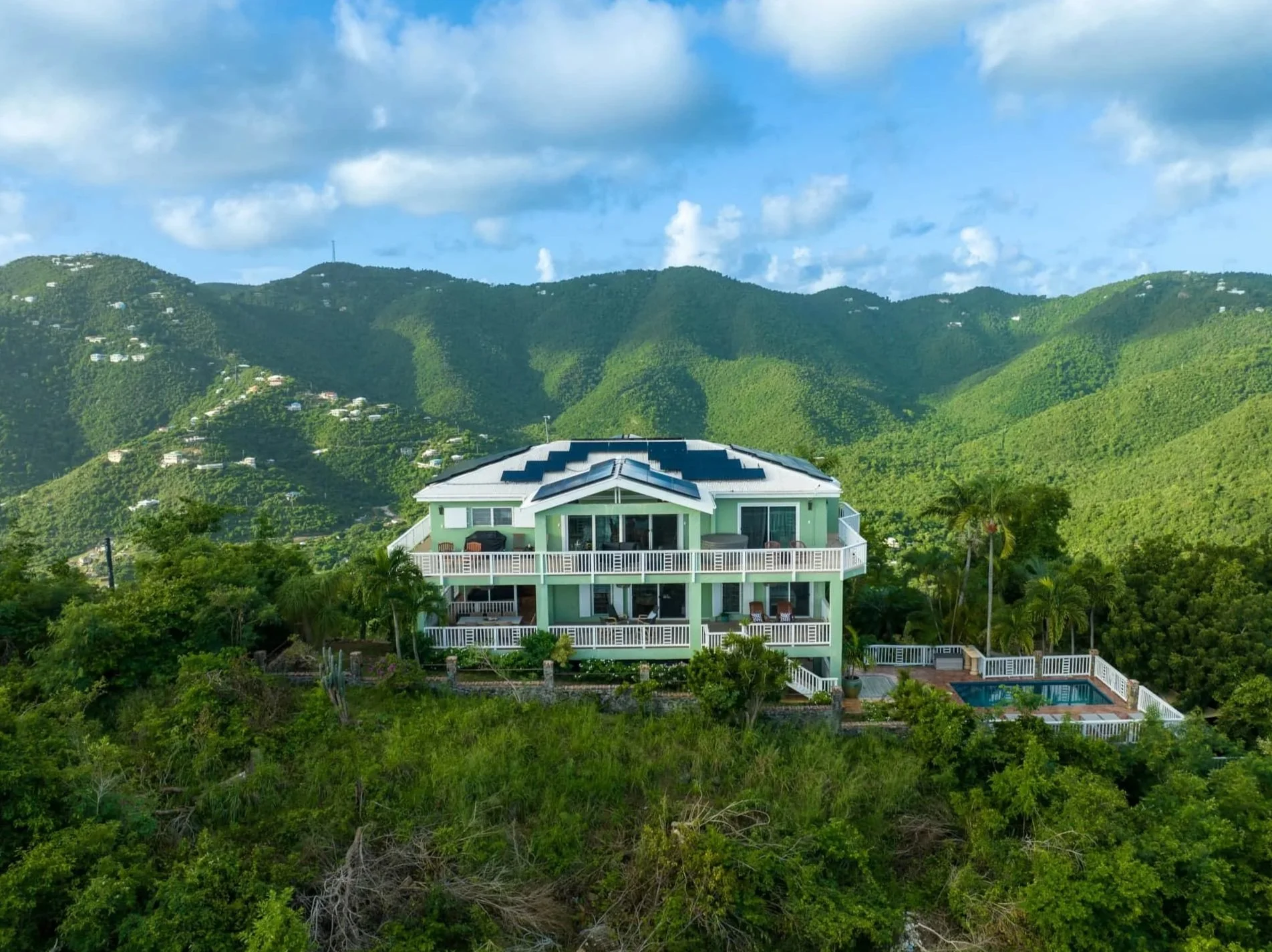 Solar panels line the roof in the case of power outages, common on a small island. All rooms have their own private balcony. High speed Wi-Fi is throughout the villa. There is a washer and dryer, no need to stress about bringing enough clothes! There is also a variety of games, from corn hole to ping pong. The yoga deck has gorgeous views of the water and neighboring islands.